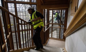 The history lesson continues inside, where a stepped corner of the abbey’s ancient raft foundation has been revealed, built from 11th-century blocks of stone from Caen in France. The discovery was the architect’s cue to take visitors on a geological journey: he has wrapped his new lift shaft with 16 different kinds of stone sampled from the abbey’s history, laid in alternating bands. There’s pinkish Purbeck marble seething with fossils; white Portland stone left with tooling marks as Hawksmoor used it; hard grey Kentish ragstone; Yorkshire magnesian limestone; and even Reigate stone, of the kind used in the original west front from 1243. “No one has used Reigate in London for hundreds of years,” Dean claims. “We had to reopen a quarry in a corner of the M25.” He sadly refrained from adding a final layer of concrete breeze blocks at the top, in reference to the 1950s lavatory block that used to occupy the site of the tower.
