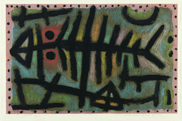 When Klee hosted classes in his home, he often required that students spend time observing the tropical fish in his large aquarium. The artist would turn the lights on and off, coaxing the fish to swim and hide, while encouraging students to carefully take note of their activity.